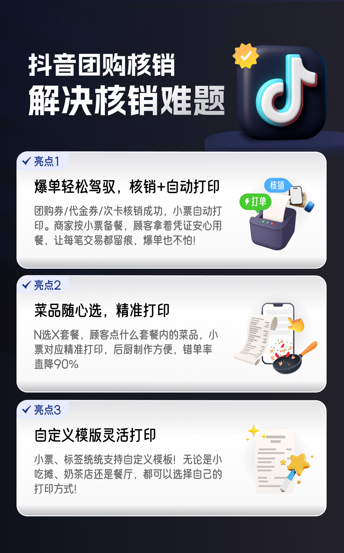 2、再点击抖音,扫描客户展示的核销二维码即可打印小票;