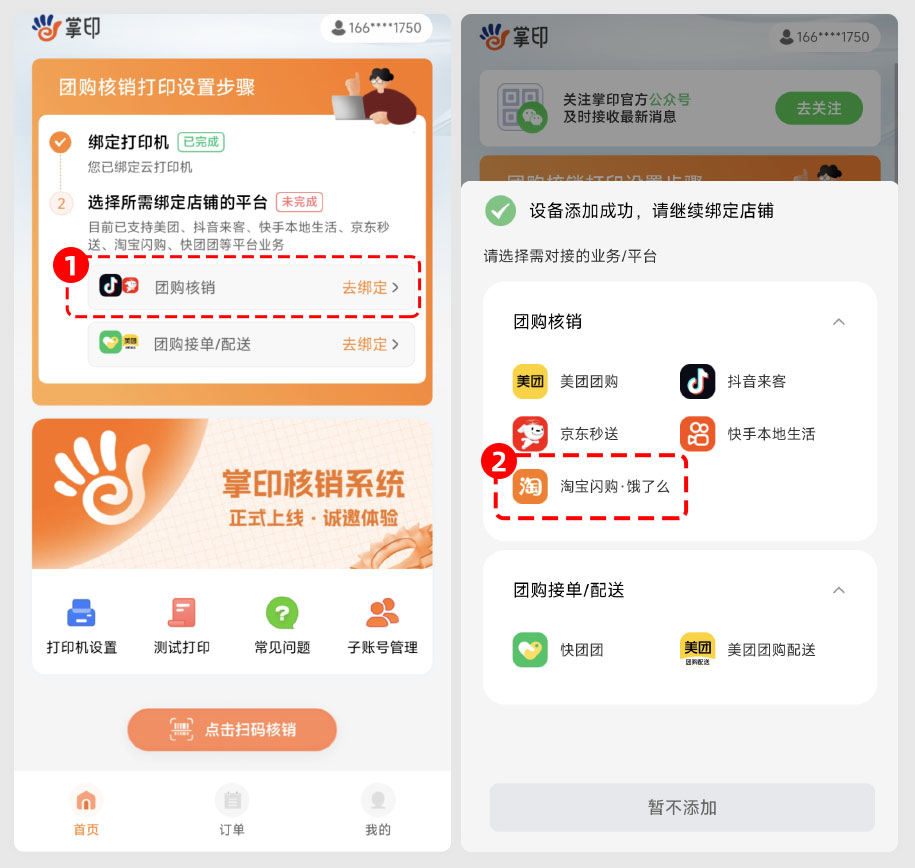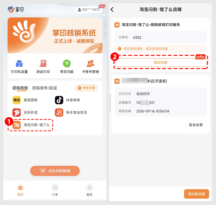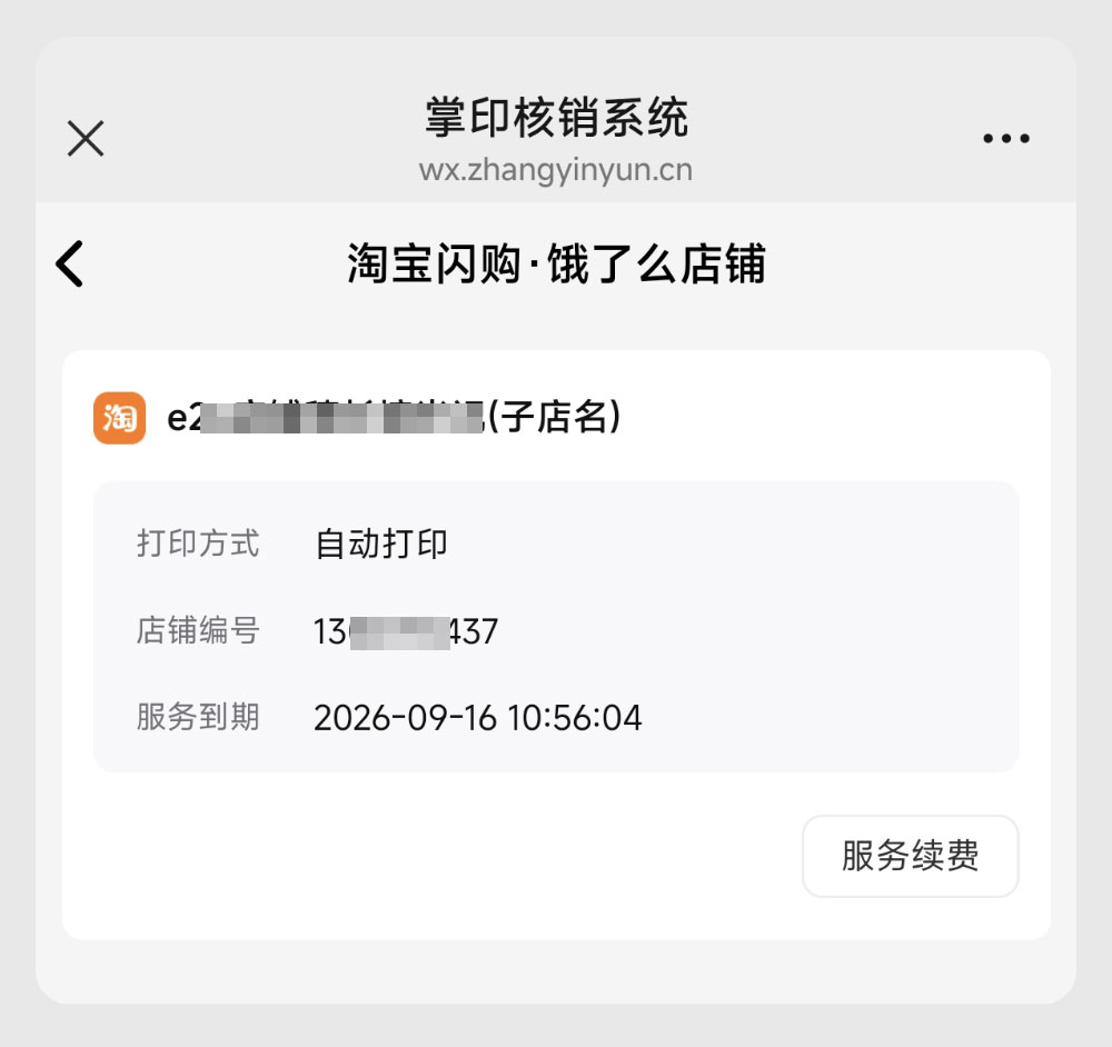 5、重新进入掌印核销系统,点开淘宝闪购·饿了么,可查看绑定好的店铺。
