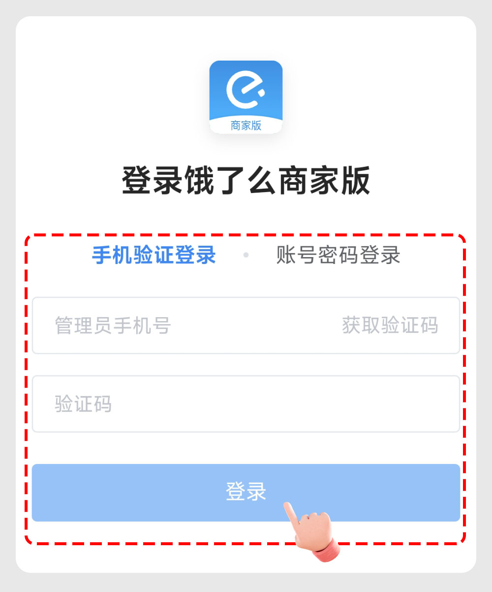 3、进入饿了么登录页面,填写饿了么账号信息后登录;