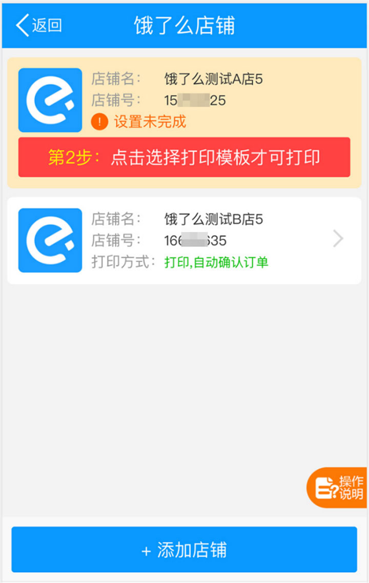 成功授权后,点返回,找到刚刚授权的店铺,点开【点击选择打印模板才可打印】按钮;