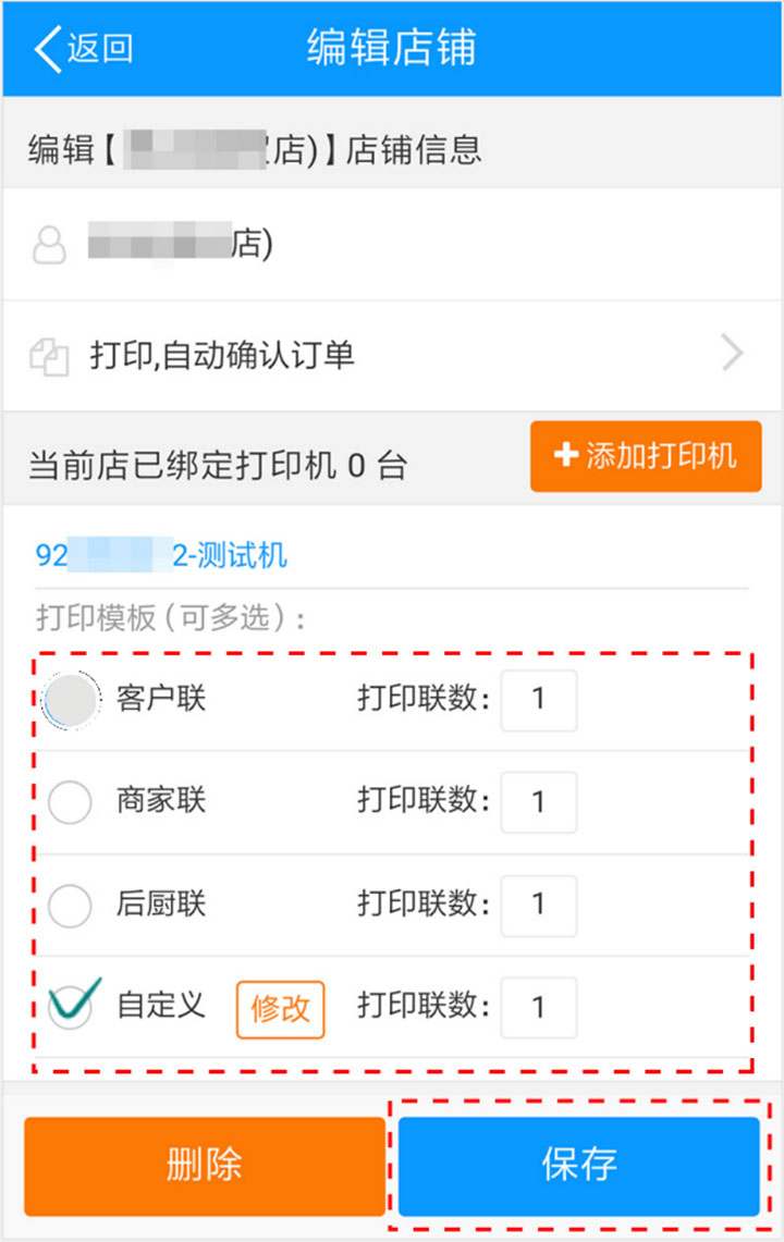 选择“打印模板”(建议勾选自定义联),点保存;