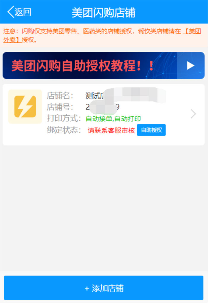 ①,点自助授权后,可以自己按步骤操作授权,授权成功后,即可自动接单打印;